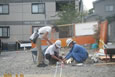 掘削が完了し、捨コンを打ってすみ出しをします。 打ち込んだ杭の位置が設計図通りかをチェックします。